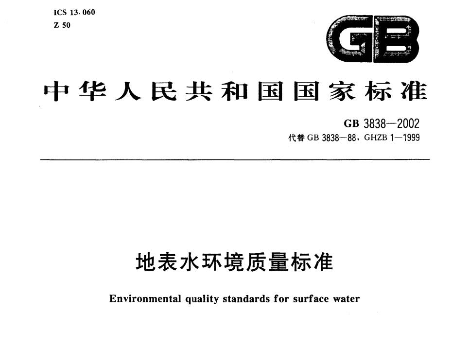 - GB 3838-2002 地表水环境质量标准:为地表水环境质量监测提供指导,涵盖了水质评估和监测参数。
